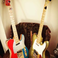 - Hardware: Guitar Fetish nickel vintage Fender-Style tuners, Guitar Parts Global bridge and control plate, steel saddles, red pearl topped control knobs