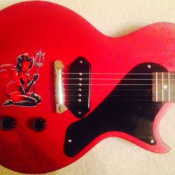 This one is really special. Named after Cleotha Staples, because its sweet, spiritual and funky. Obviously influenced by Gibson’s single-cut Les Paul Junior, right down to the build, tone and materials. Features a three piece mahogany body, one piece 24 3/4” scale set neck for maximum sustain, medium jumbo frets, TonePros Kluson 3+3 tuners, and a GraphTech nut. I did replace the TonePros bridge for a Wilkinson intonated wraparound, and put on black Gibson Speed Knobs, but otherwise left it stock because, really, what else do you need? LP Jr’s were a clear favourite of players named Mick, i.e., Mick Green (Johnny Kidd & the Pirates), Mick Ralphs (Mott the Hoople), Mick Jones (The Clash), and Not Micks like Johnny Thunders, Keith Richards, Joan Jett, Leslie West, and a parade of snotty punks in the 70’s and 80’s when you couldn’t give an original away. Cool improvements include CTS pots on the volume and tone controls, and an Orange Drop capacitor for even high-end roll off. The pièce de résistance is a single dog-eared Lindy Fralin P-90 pickup with an Alnico 4 magnet and adjustable pole pieces. There’s also a push-pull Tone knob that bypasses the tone potentiometer for “shimmer and snarl.” Satin finished, including the neck, and feels great in your hands. This baby would cost hundreds more with a different name on the headstock. Aren’t you just dying to dismiss all the bewilderment about pickup selection, coil tapping, active electronics, switch settings, et.al. and just unleash the almighty kerrrangggg that cuts all that muso poseur shite to the quick? Yes, of course you are. Best deal out there for pure no-nonsense, open-throttled rock ’n’ roll fun. I keep it loaded with D’Addario NYXL .10-.46.