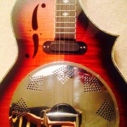 - Hardware: Straightline tailpiece, railroad spikes, Planetary tuners, biscuit bridge atop a reverse-cone resonator