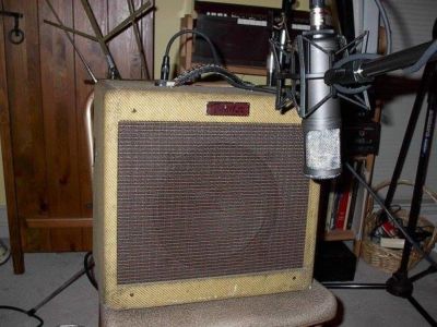 I purchased this from my friend Jef Smith in New York. Incredibly simple, its controls comprising nothing more than an on/off switch, a volume knob, and a tone knob. It contains a pair of 12AX7 tubes, one used as a two-stage preamp, and the other as a phase splitter to drive the pair of push-pull EL84 output valves, providing a remarkable amount of poke for a small amp. Notable players include Jeff Beck and Derek Trucks. Kind of a one-trick pony, but it does that trick very well. Louder than you think it will be. Excellent recording amp.