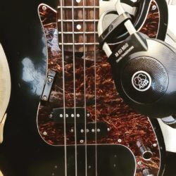 Excellent recording bass, albeit a trifle heavy for stage work. Loaded with Flat-wound D’Addario Chrome medium long scale bass strings, .50-.105. I’ve recorded and toured with this extensively over the last four years, and I like to think somewhere Kip is quite pleased about that.