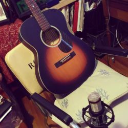 On an additional note, do not turn up your nose at laminate (or ladder-braced) guitars, as they record exceptionally well, and are easy to fit sonically into a track with a full band, where as a D28 or similar rosewood backed dreadnoughts can be more problematic due to the nature of their deep, rich and harmonically complex tone. I recorded almost the entirety of the Dixie Bee-Liners’ first EP with a cheap little Yamaha laminate, and it kills. The exception to this rule would be a Martin D18 or similar dreadnought with mahogany back and sides, which tend to be more “punchy” in the upper mids.
