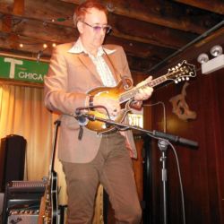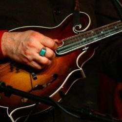 Made by master luthier Audey Ratliff in his shop in Church Hill, TN. Audie made Adam Steffy’s first pro mandolin, and Ratliff is one of the best deals out there on a hand-carved, small shop solid wood mandolin. “Buster” was my father’s nickname, and seemed appropriate because the first week after I took possession of it I cracked the top while putting it into the case after a TV appearance in Knoxville. I called Audey from the road in a panic and he talked me down off the ledge and through the process of working some epoxy into the wound until I could get back to his shop for a proper fix. We were back on the road a couple days later and I didn’t have the time to leave it with him for a cosmetic touch up, so the battle scar is still visible. Great projection, beautiful woody “chop,” and records beautifully…every engineer I’ve ever worked with comments on this. Highly recommended.
