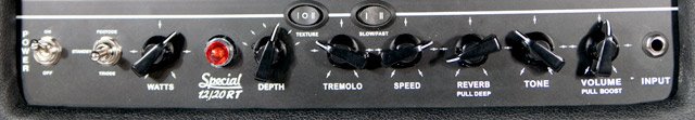 - Volume w/ Pull Boost, Tone, Reverb w/ Pull Deep, Speed, Tremolo, Depth & Watts, Effects Send, Effects Return (Back Panel)