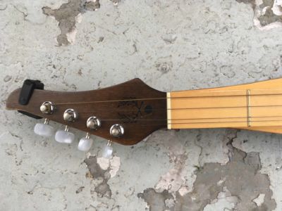 The first time I heard lap dulcimer was The Rolling Stones’ “Lady Jane,” and later some of the Folkways albums Jean Ritchie recorded. Though it first appeared here in the early 19th century among Scots-Irish immigrant communities in the Appalachians, the instrument has no known precedent in Ireland or Scotland, and likely originates from several similar European instruments like the Swedish hummel, the Norwegian langeleik, the German scheitholt, and the French épinette des Vosges. I primarily use it for songs in the key of D, though there is a dulcimer capo, but it doesn’t work terribly well. I’m considering putting a Fishman contact mic pickup in this and seeing what sort of mischief I can get up to with effects pedals. Meanwhile you can overhead mic it, or I have a small tie-clip broadcast mic that can be affixed inside the sound hole that sounds pretty cool if you can minimise surface noise.